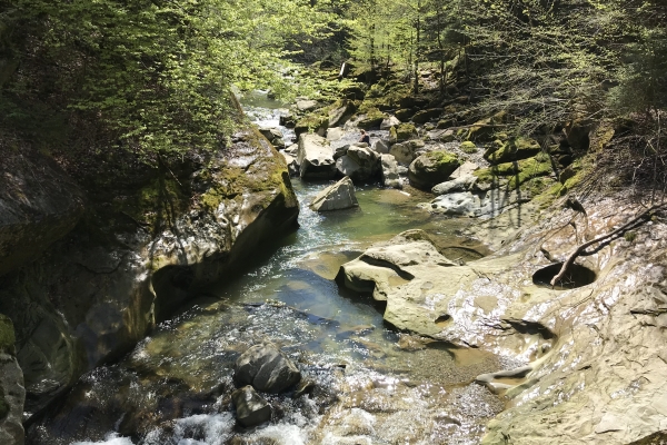 Der Wandertipp von Urs: An einem heissen Sommertag bieten die Appenzeller Töbel Gelegenheit für herrliche Wanderungen an Wassern und im Schatten. Und zwischendurch kann auch eine erfrischende Abkühlung im Bach genommen werden! Aber vorerst alles der Reihe nach. Schon der Start in Trogen ist vielversprechend – ein ausgedehnter Besuch auf dem Landsgemeindeplatz mit seinen imposanten Palastbauten ist ein Muss! Die Hörspur kann heruntergeladen werden und führt zu den wichtigsten Sehenswürdigkeiten. Dann geht es aber los, zuerst der Route 22 Kulturspur Appenzellerland entlang hinunter zur Goldach, wo in früheren Zeiten tatsächlich Gold geshürft wurde. Dann biegen Sie rechts ab und in den schmalen „Moosbachweg“, der idyllisch entlang dem Bach nach oben führt. Unterhalb Wald geht’s links zur Hofmüli hinunter und auf der anderen Seite hoch nach Rehetobel. Das Stickerdorf kann ebenfalls über eine Hörspur entdeckt werden. Vom Dorf Rehetobel steigen Sie auf der Route 3 Alpenpanorama-Weg ins Chastenloch hinunter. Direkt an der Goldach können Sie sich im gemütlichen, alten Restaurant stärken. Über die Goldach und dem Säglibach entlang hinauf nach Speicher, um die Sportanlagen herum und schon sind Sie im Töbeli. Dann geht es wieder der Route 22 entlang hinunter zum Säglibach zur Spinnerei und dann hoch an der Kantonsschule vorbei nach Trogen. Eine ausgedehnete Route durch unbekannte Töbel mit ganz viel Geschichte und Kultur! Entdecken Sie die Töbel im Appenzeller Mittelland!