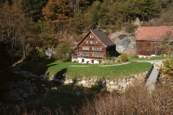 Bei dieser Rundtour um das Kulturdorf Trogen steigen wir ab ins Goldachtobel. Nicht nur die Goldach passieren wir. Mit dem Bruederbach, Sägelibach und dem Töbelibach werden total vier Gewässer überquert. Im Tobel badeten früher Gäste aus Nah und Fern. Ein stolzes Gebäude zeugt heute noch davon. Im Chastenloch selbst erwaret uns eine gemütliche Gaststube oder ganz in der Nähe eine lauschige Feuerstelle. Hier im Tobel wurde übrigens früher auch gemahlen, die alte Chastenloch-Mühle ist aber leider nicht mehr in Betrieb. Nun folgt der rund 45 Minuten dauernde Aufstieg nach Speicher. Auf der �Kulturspur Appenzellerland� wandert man weiter von Speicher zurück nach Trogen. Kurz vor Ende der Tour passiert man das Gelände der Kantonsschule Trogen. Hier gibt es ganz unterschiedliche Baustile zu bestaunen!